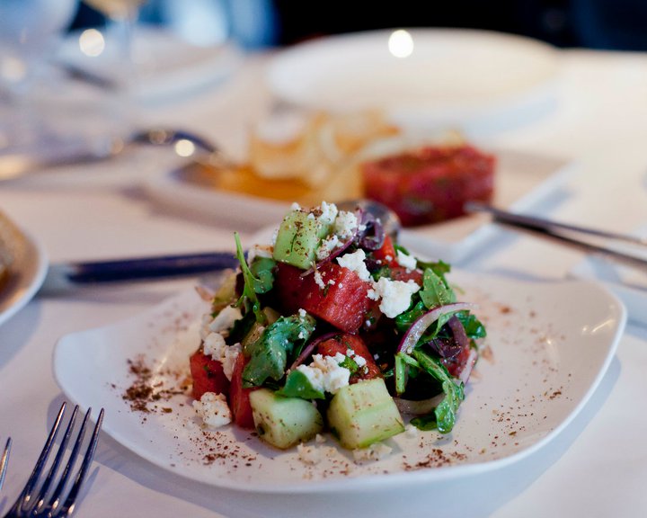 Greek Style Watermelon Salad – Watermelon with upland cress, bacon molasses vinaigrette, feta, black olives and pecans. A well-balanced salad, though a touch of sour would have been a nice addition–maybe something in a pomegranate molasses?