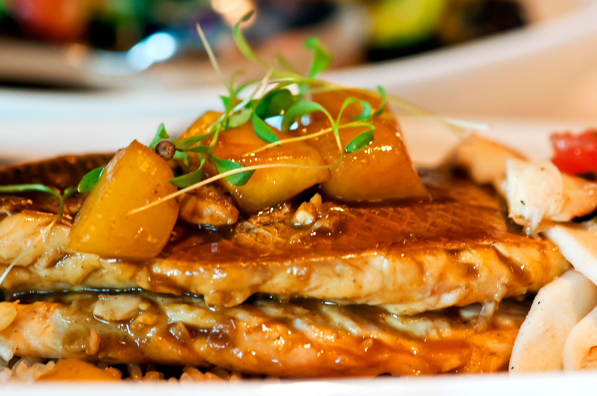 Whole Yellowtail Snapper – Pan-seared Yellowtail Snapper with Malaysian curry, green and ripe mangoes, jasmine rice and hearts of palm salad. Our portion was most of a snapper, and I’m so happy it wasn’t more. This dish was great–it smelled amazing, and the curry was nice and light, but at this point we were getting pretty stuffed.