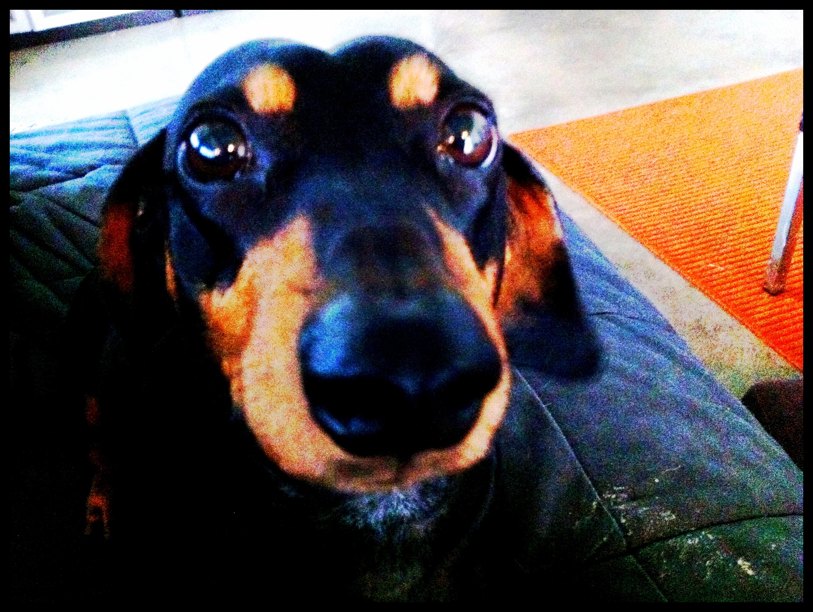 Awwww… just lookit that clingy, clingy face. I’ve had a dog-sized growth since I got home. Ok, not since I actually got home; more like since his dad left.