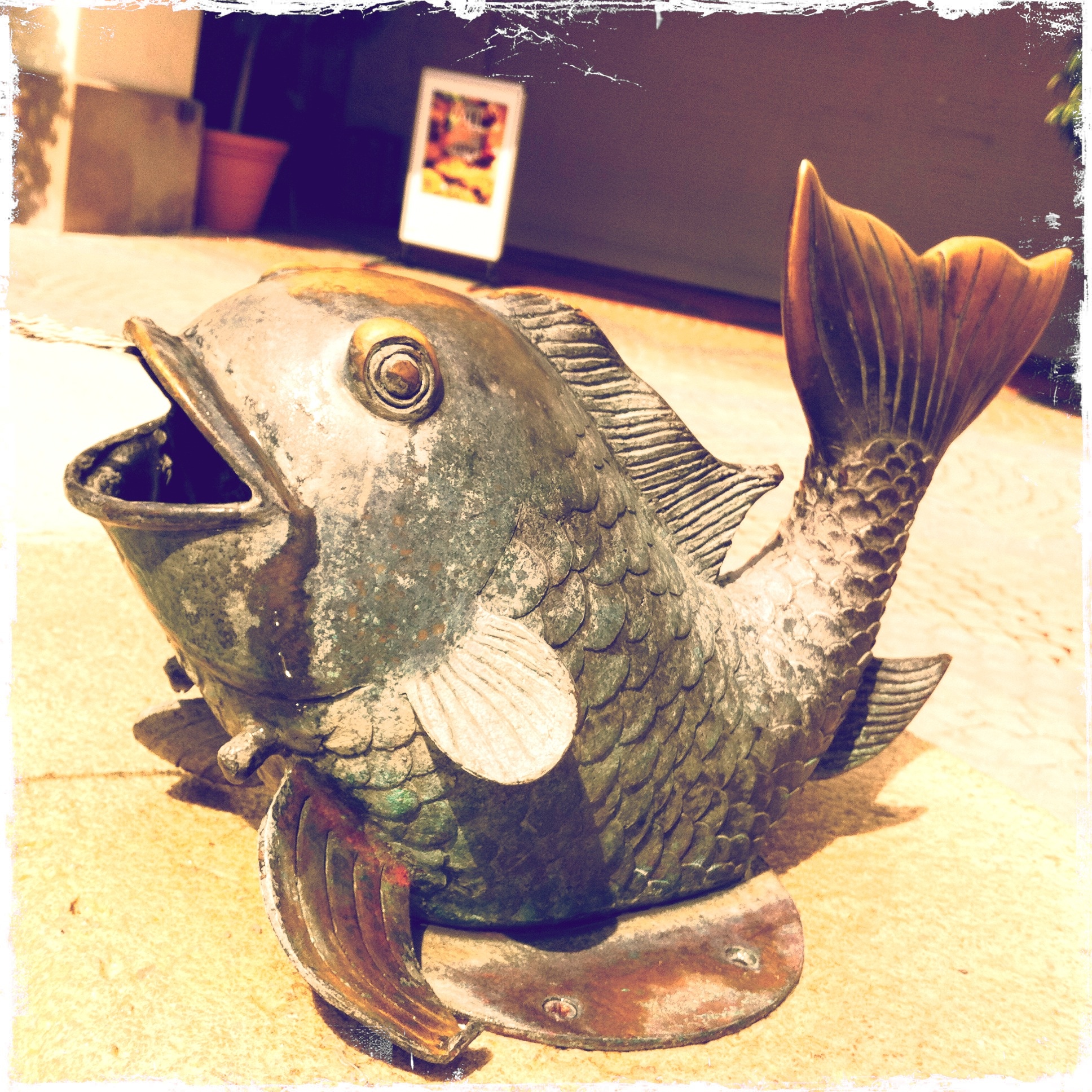 We had some time to kill this morning before the photography store opened and our planned visit to the classic car show, so we decided to hit up the outdoor mall to kill some time. Nothing there was open yet either, but it’s a nice place to stroll. As I was sitting down to snap this picture, my DH started chuckling. “You know you have a real camera with a really nice lens in the purse you just sat down, right?” To which I replied “yeah, but… it’s so much easier to just whip out my phone, crack open Hipstamatic, and my shot is just there. No pulling it off the card, no resizing for the web.”
