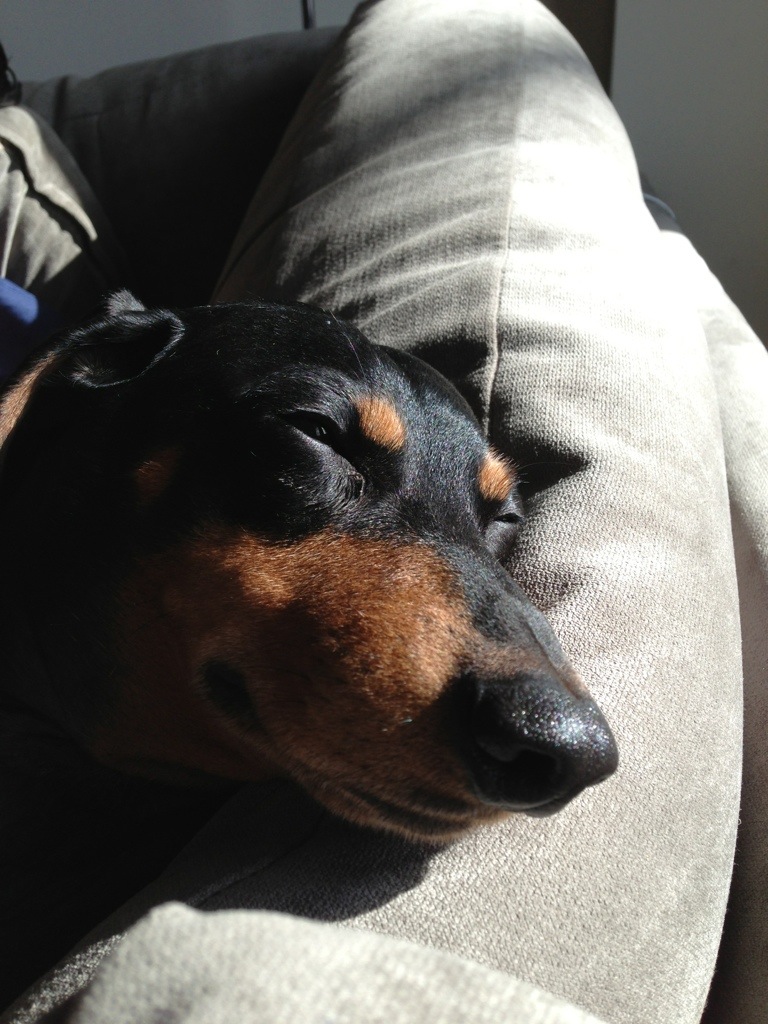 All I can say in my defense is that he’s ridiculous and the light was really good today. This is him, fake napping with his head turned almost backwards to rest on the back of the couch to soak up some rays.