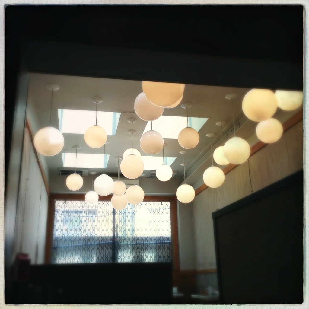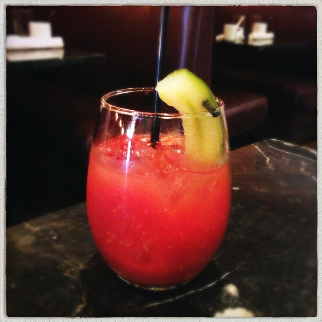 Brunch @ Char No.4: chipotle bourbon bloody, beautiful lights, fun wallpaper.
