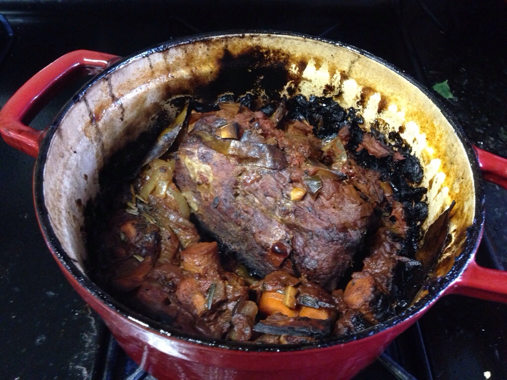 Well, shit. Lest anyone, anywhere out there think I lead a Pinterest board life … this happens. Luckily, the mailman buzzed my door before things caught on fire. The living room/kitchen smells atrocious. And there goes 2 full meals’ worth of roast. Boo.