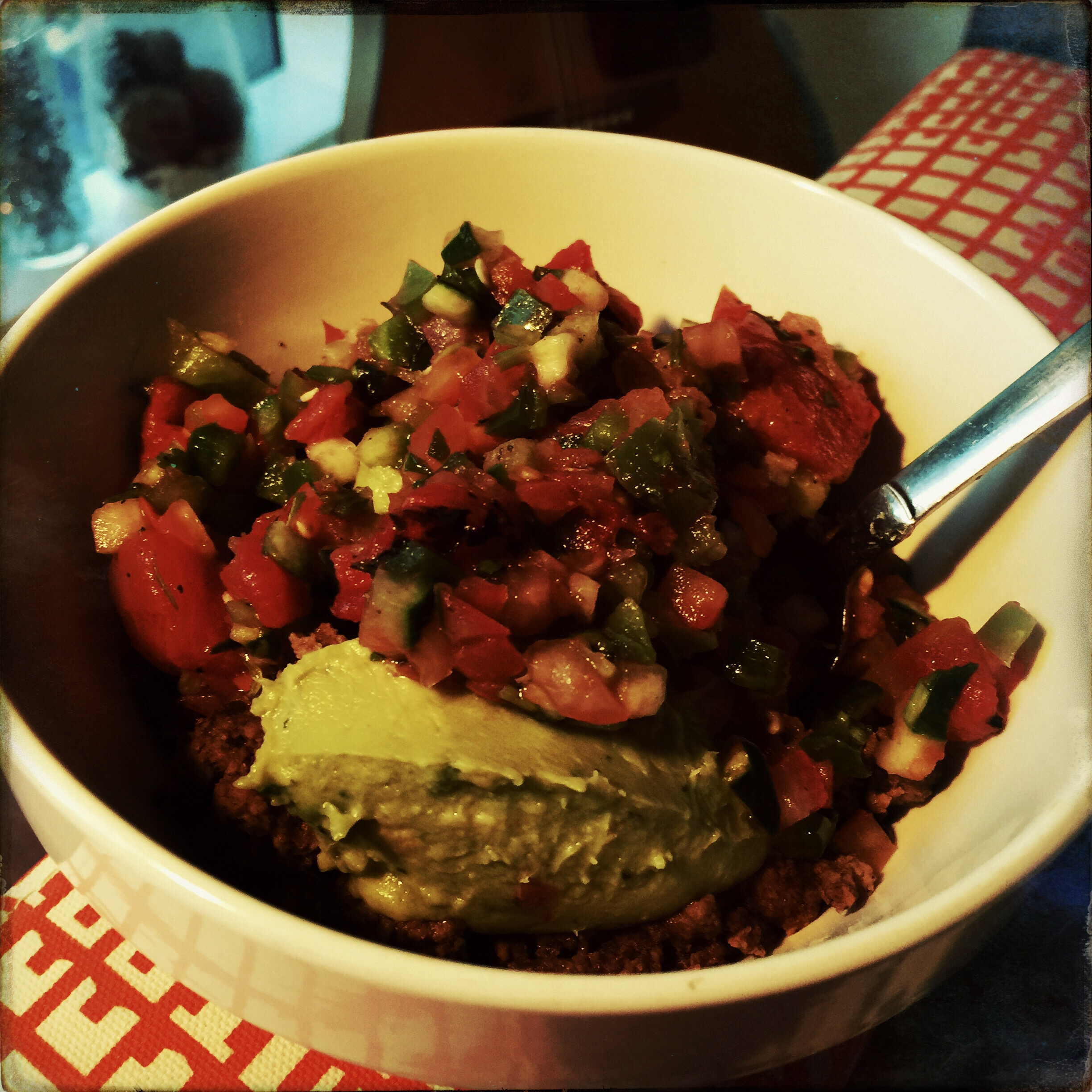 Dinner was at least kind of exciting. I remember last Whole30 craving salsa like it was going out of style – this time, not so much. Luckily, I had the ingredients for a lazy Mexican bowl/pretty much paleo nachos minus the crunch on hand (you know, just in case I was stranded during the blizzard-that-wasn’t, or in case the Super Bowl thing we’re going to was lame and full of crap I don’t want to eat).