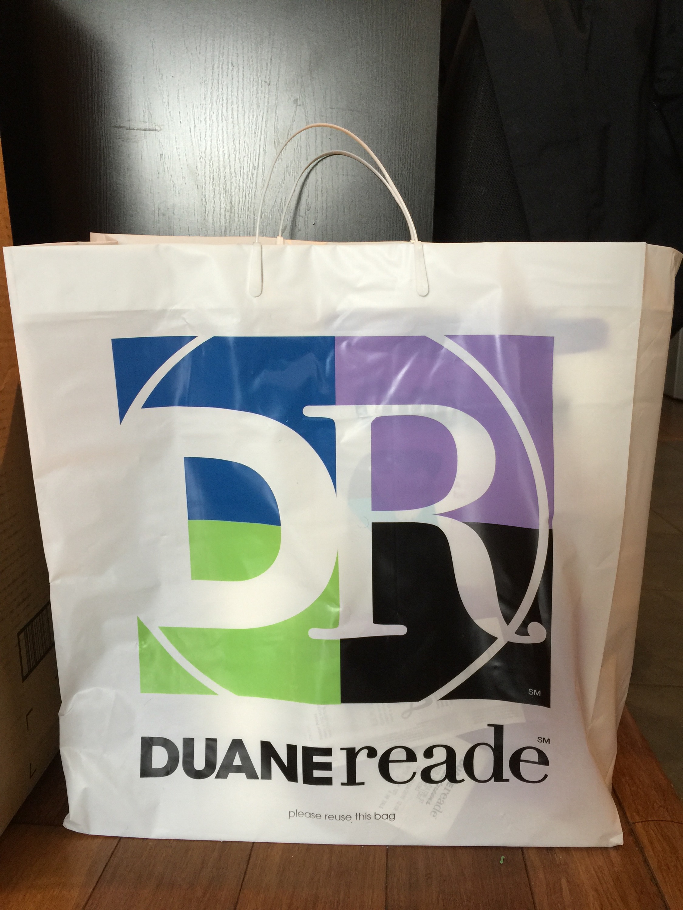 Perception (a present!) is much more exciting than reality (toilet paper) when it comes to what’s in this Duane Reade bag.