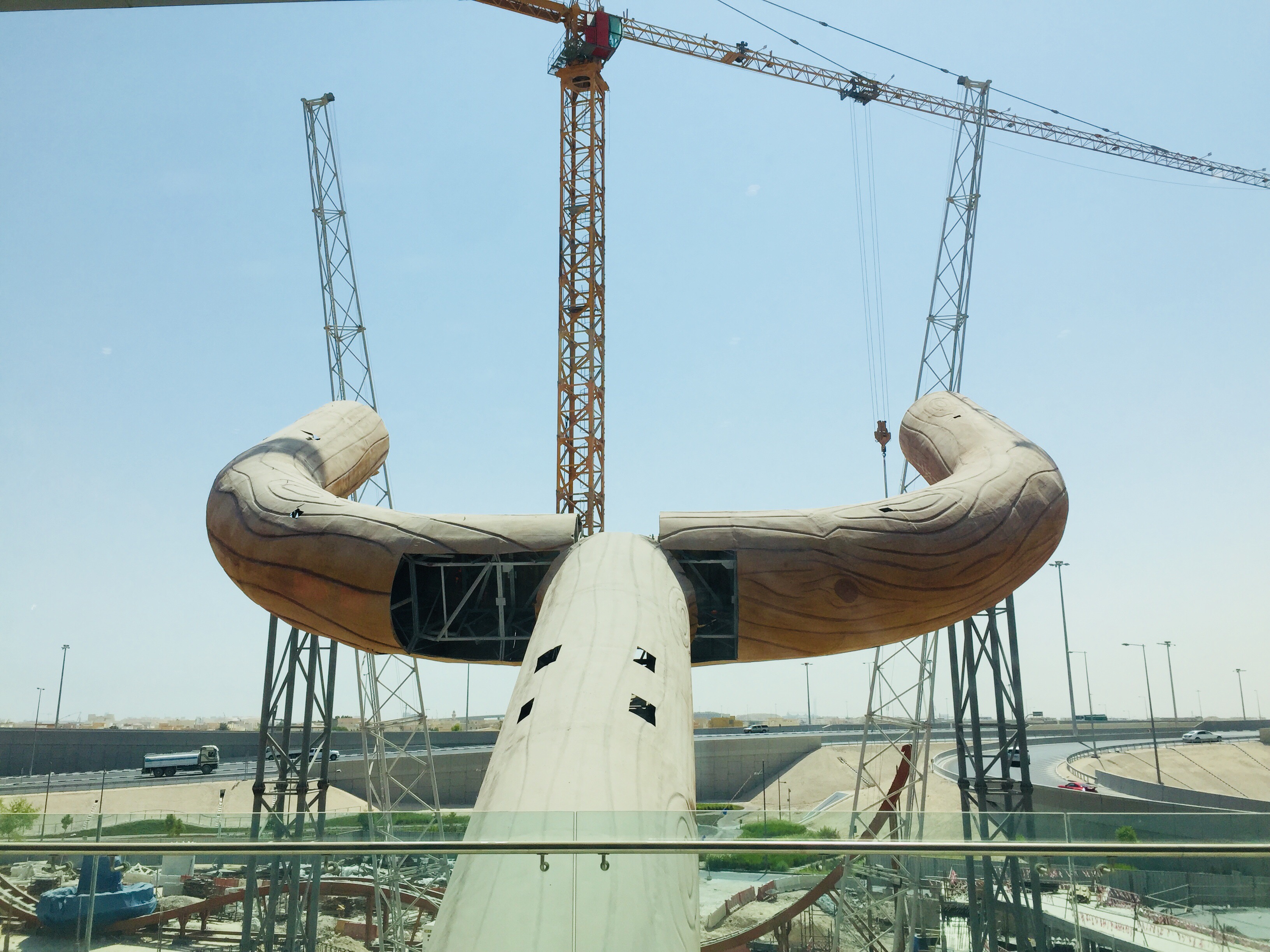 They’re building a giant slingshot as part of an Angry Birds experience at Festival City Mall in Doha.