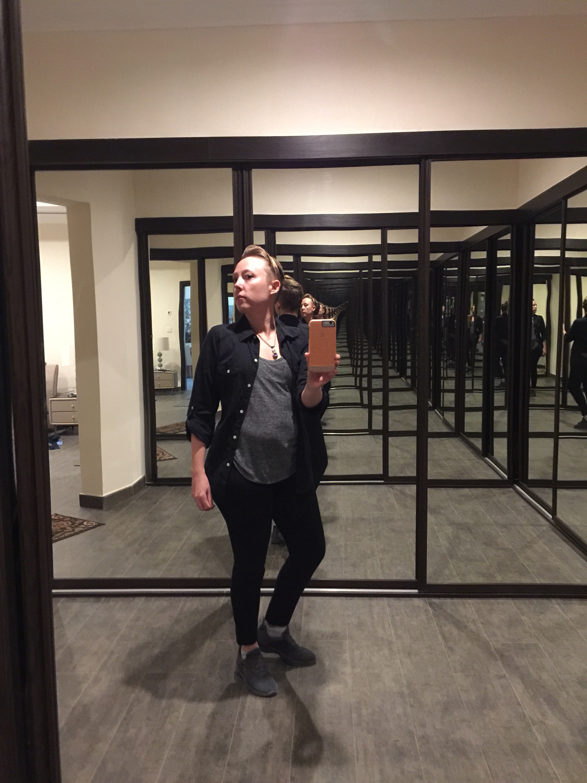 Took a shot of today’s outfit, because despite the crap lighting giving me jowls and a gut, I was feeling pretty fly.