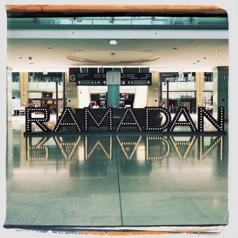 On the subject: we’re just over halfway done with the month, and I’m bummed that I missed the kids’ celebrations (called Garangao) on Friday. Next year, I’ll do better and get out for them! Garangao is a kids night where children go singing traditional songs around the neighborhood and receive small gift bags and sweets from their elders (sounds kind of like Christmas caroling, just when it’s 90-something degrees). I’m not sure if it’s a Gulf-specific thing or not, but the malls and popular gathering places were all holding celebrations with shows and crafting workshops and other stuff for kids and families.