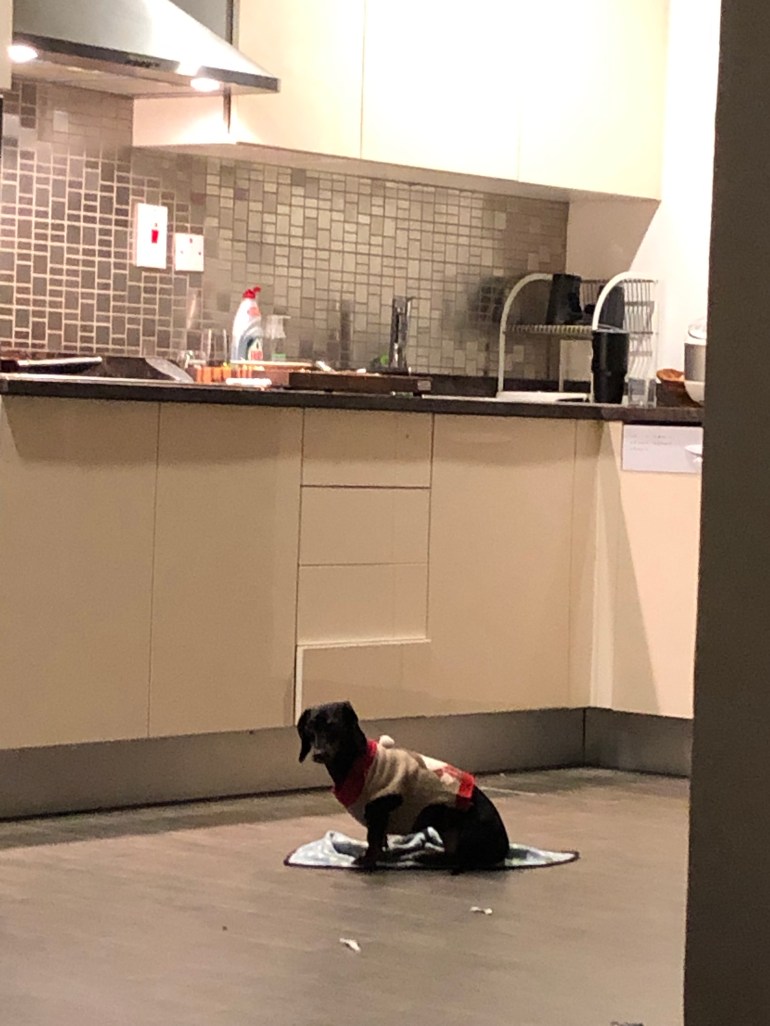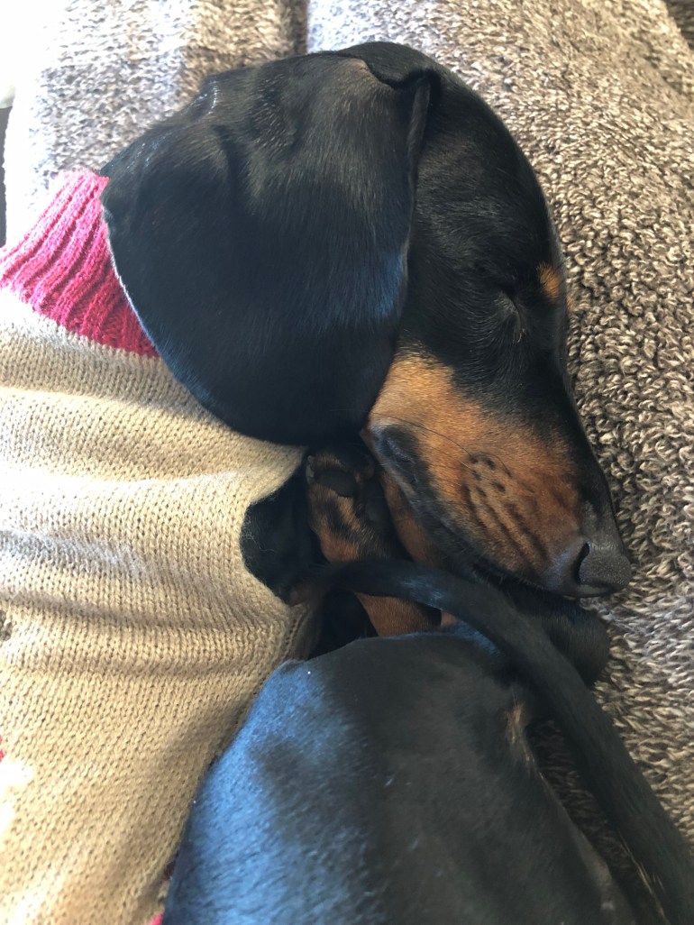 Pouted and refused to do anything but sleep on me or follow me around, sitting on her little blankie because she doesn’t like to put her butt on the cold floor.