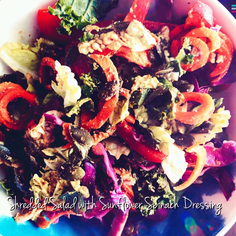 Shredded Salad with Sunflower Spinach Dressing