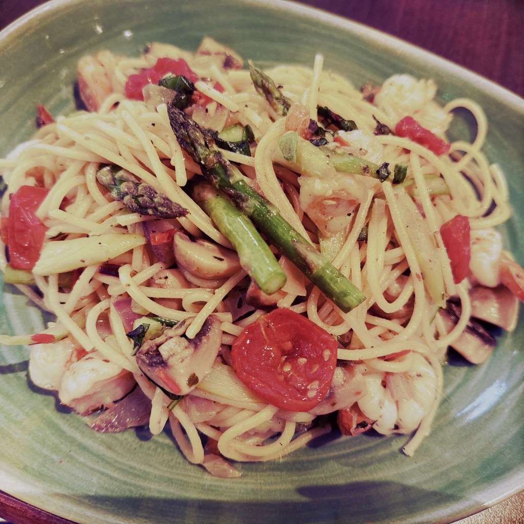 Happy birthday, Ma. Could not resist a dish with 2/3 of my favorite ingredients: mushrooms, shrimp & asparagus. #fancy You would have cracked up at the noodles. I thought about getting them to switch, but decided to work past the cringe and put my big girl pants on.