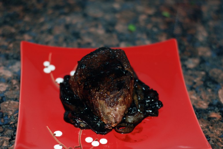 Pan-Seared Beef Tenderloin with Balsamic Onions and Port Sauce