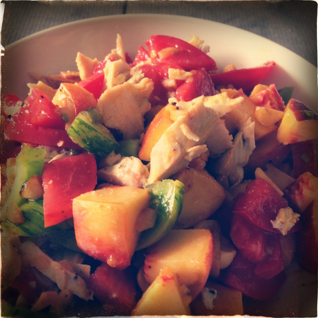 This dish serves one, but can be easily scaled up to serve two. The salad could actually possibly serve two as it stands if you’re having something other than just steak and asparagus, but I happily ate it all in one go.