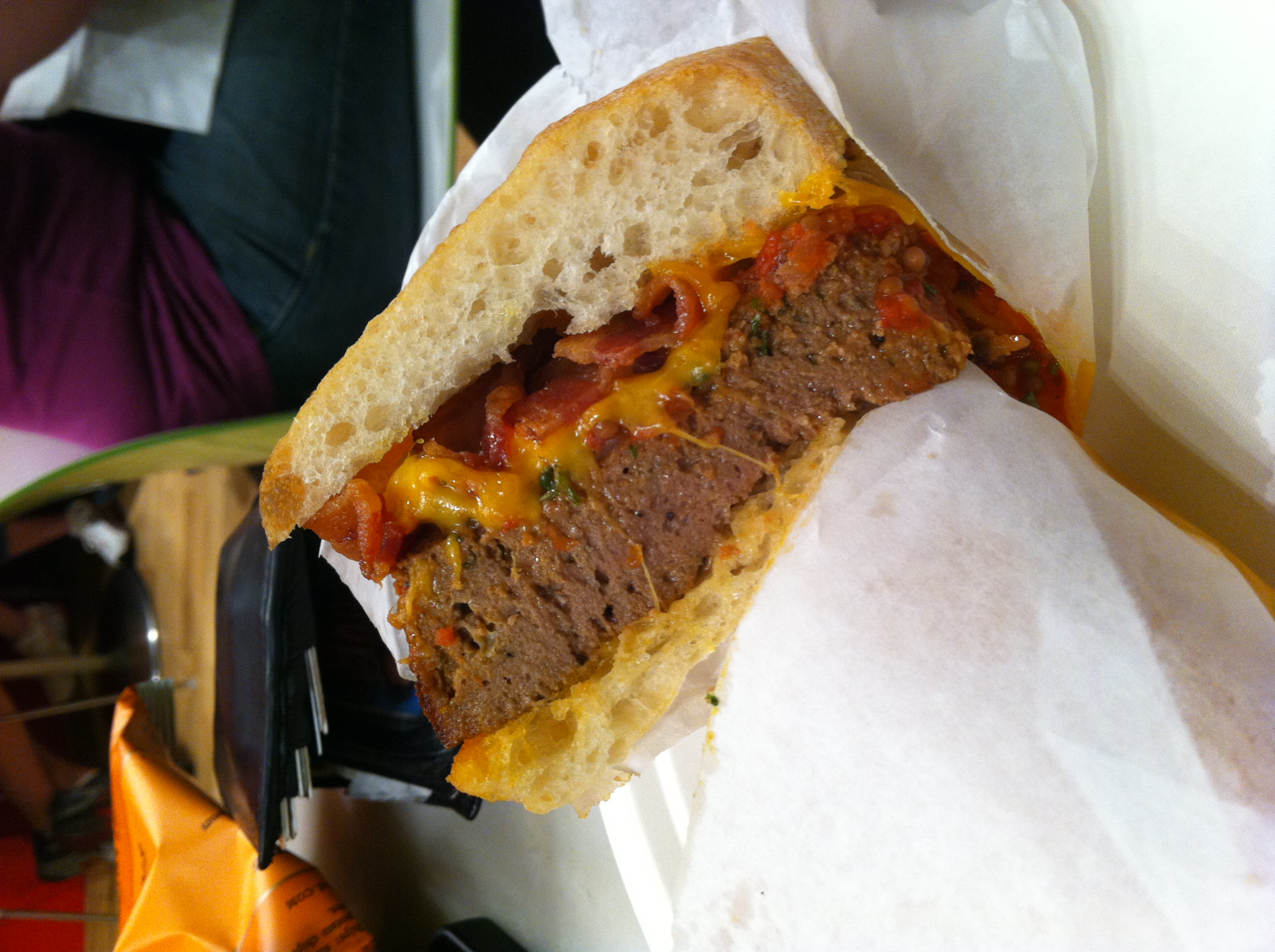 My DH had the Meatloaf with cheddar, bacon and tomato relish on a roll. It was also excellent.