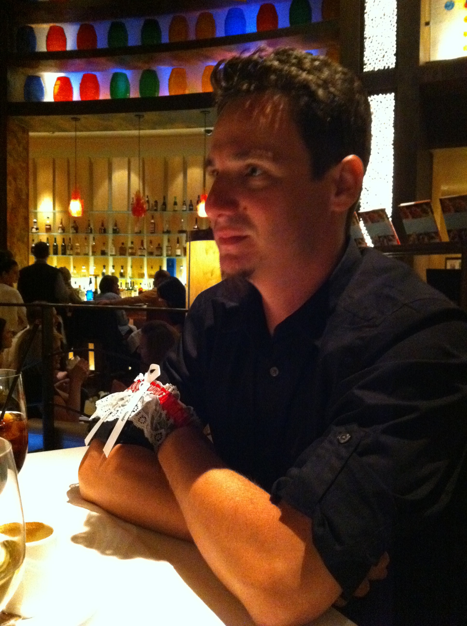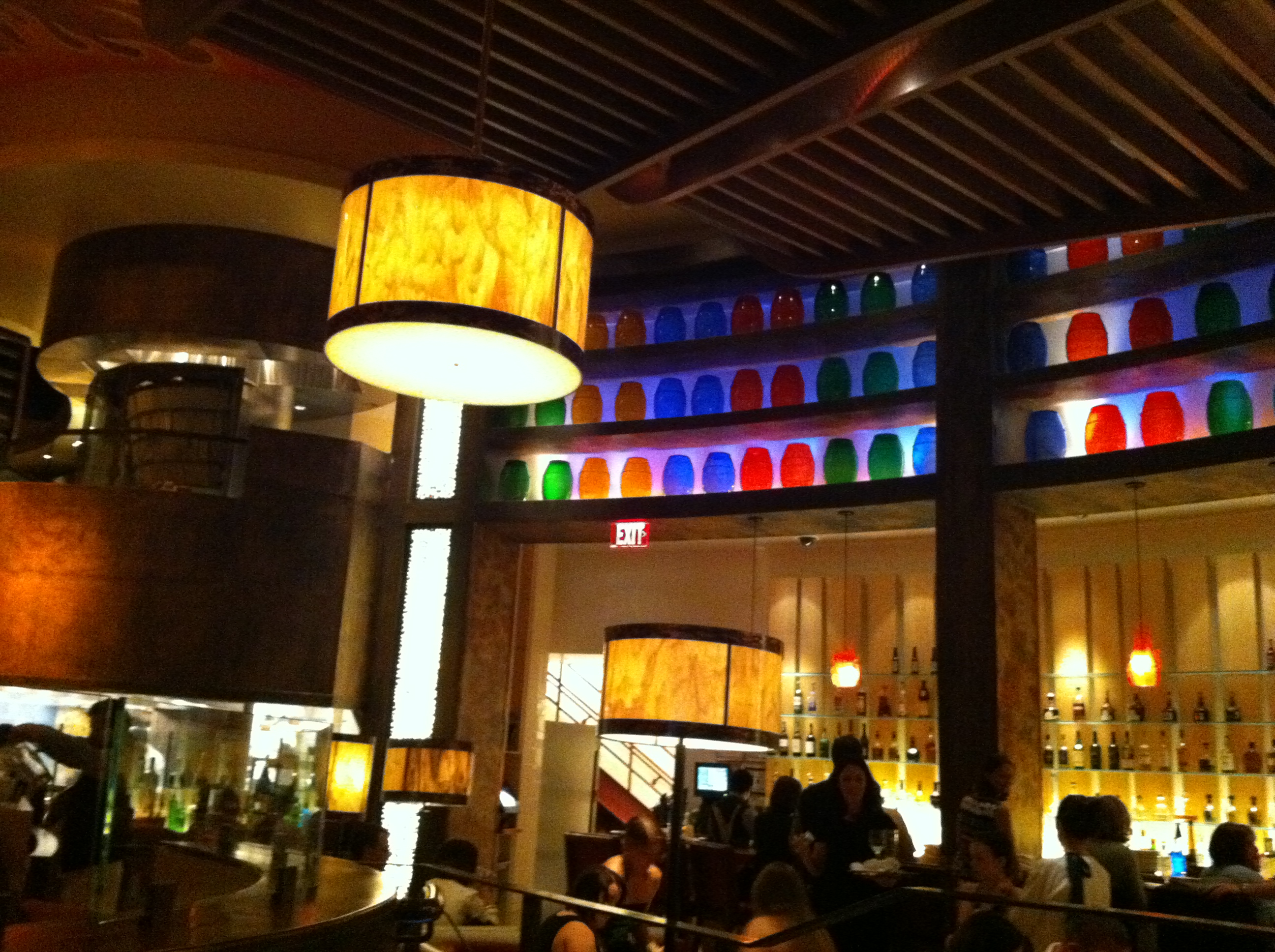 Perhaps our favorite-looking hotel--CosmopolitanThe 3-story crystal bar @ Cosmopolitan4th floor ceiling @ CosmopolitanSoon-to-be-opened sushi bar @ CosmopolitanLight reflection on a foosball table outside Jose Andres' place, JaleoI am completely in love with the classic styling in the seating nooks @ Cosmopolitan*hee hee