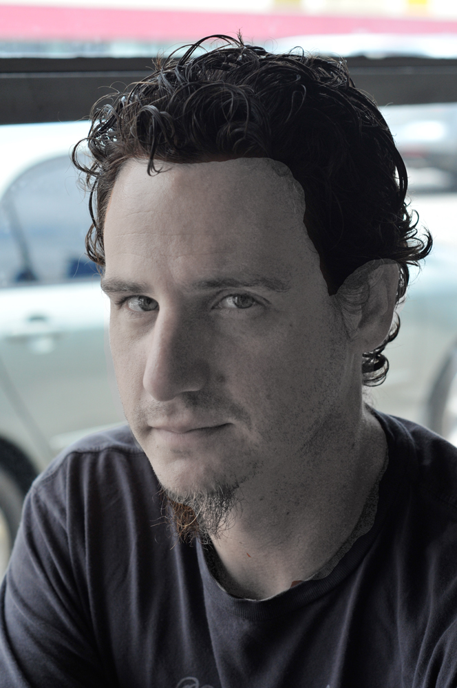 This version incorporates two different textures with the lomo (see below); a distressed metal/burned film texture and a copper bokeh pattern. I like the end result; my DH says it makes him look old and vaguely creepy. I don’t see the old, and I happen to like vaguely creepy portraits. Bonus: I hardly even notice the hated car in the background.