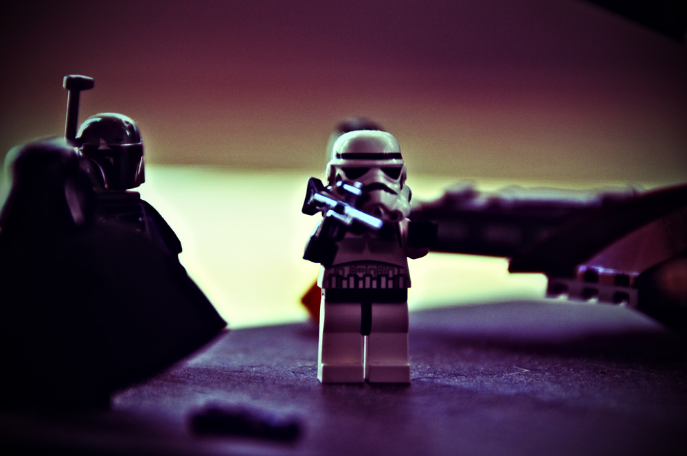 A portion of the Star Wars lego tableau staged on my headboard run through a Lomography action in Photoshop. What? You doubted I was an utter geek? Star Wars is awesome. Star Wars + Legos is even better.